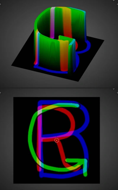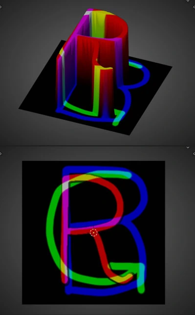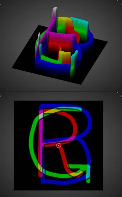 Here we are adding all of the channels together just for fun. The more channels that overlap at a vertex the greater the vertex height