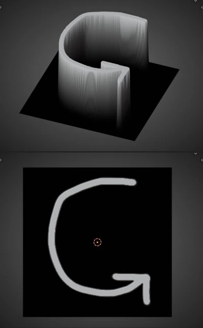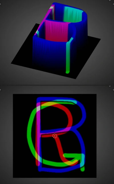 Here we are using a Vertex Color layer as straight displacement to see the relation between the colors and separating them